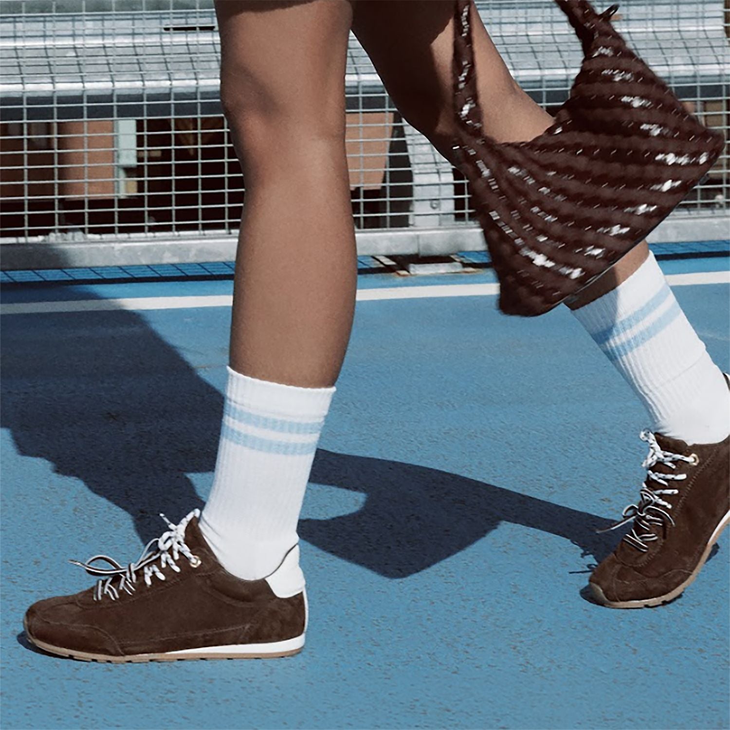 - Dark brown suede upper