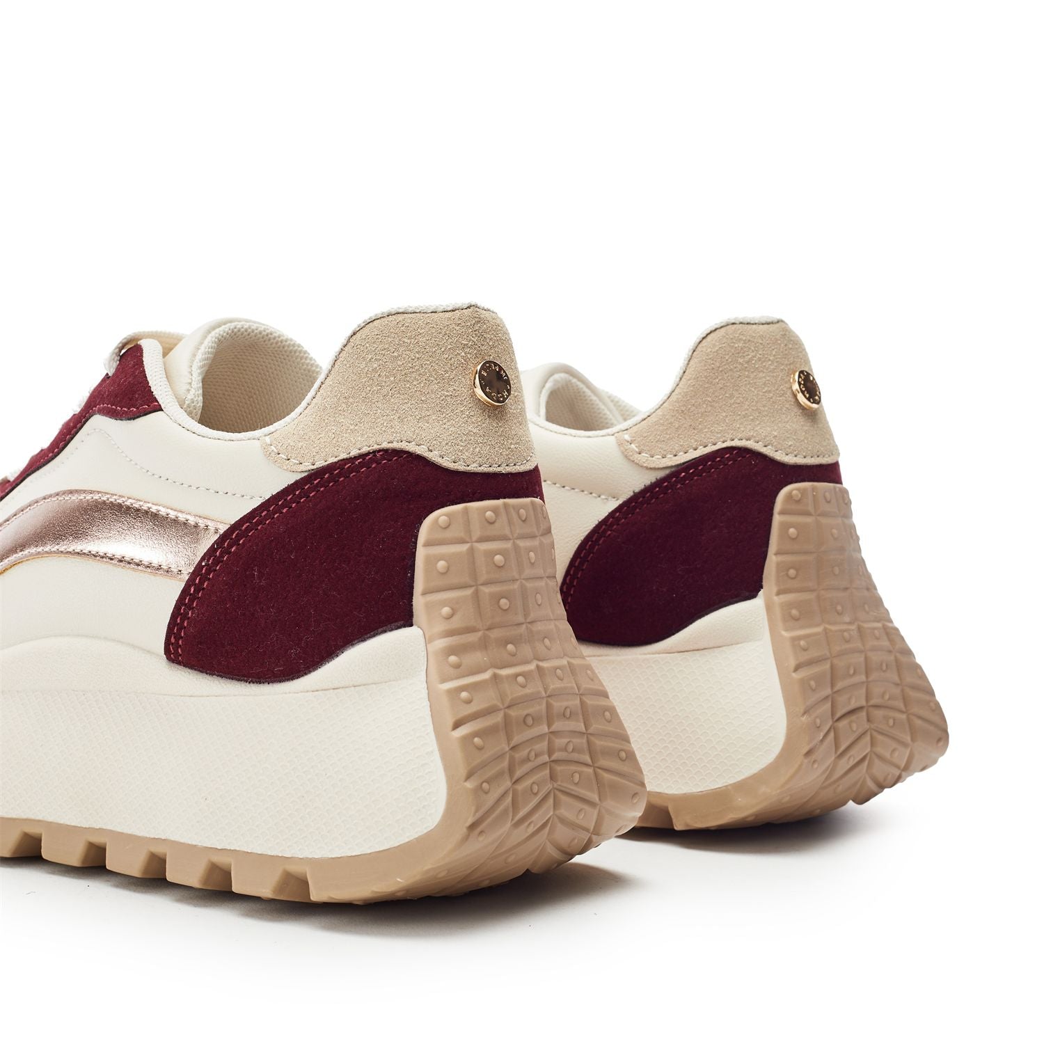 - Off white porvair upper with burgundy and taupe alcantara facings and heel counter