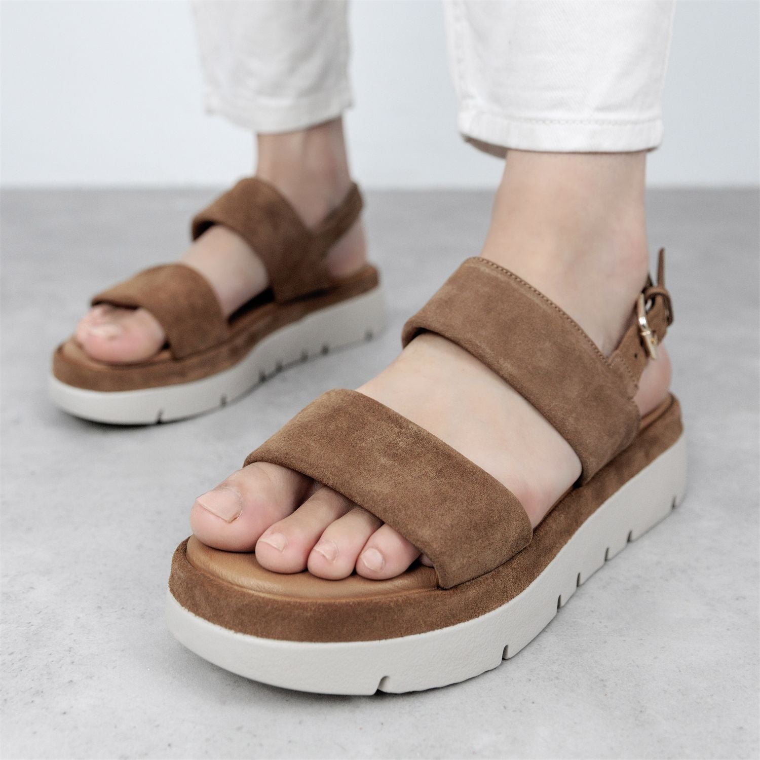 - Universally flattering pattern on the foot thanks to the double strap and buckle pattern.