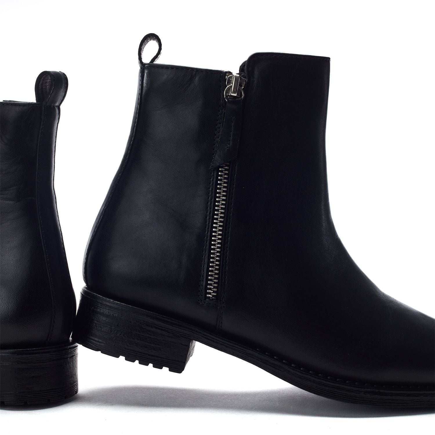 • The standout zip detail adds an edgy modern touch to the classic ankle boot silhouette.