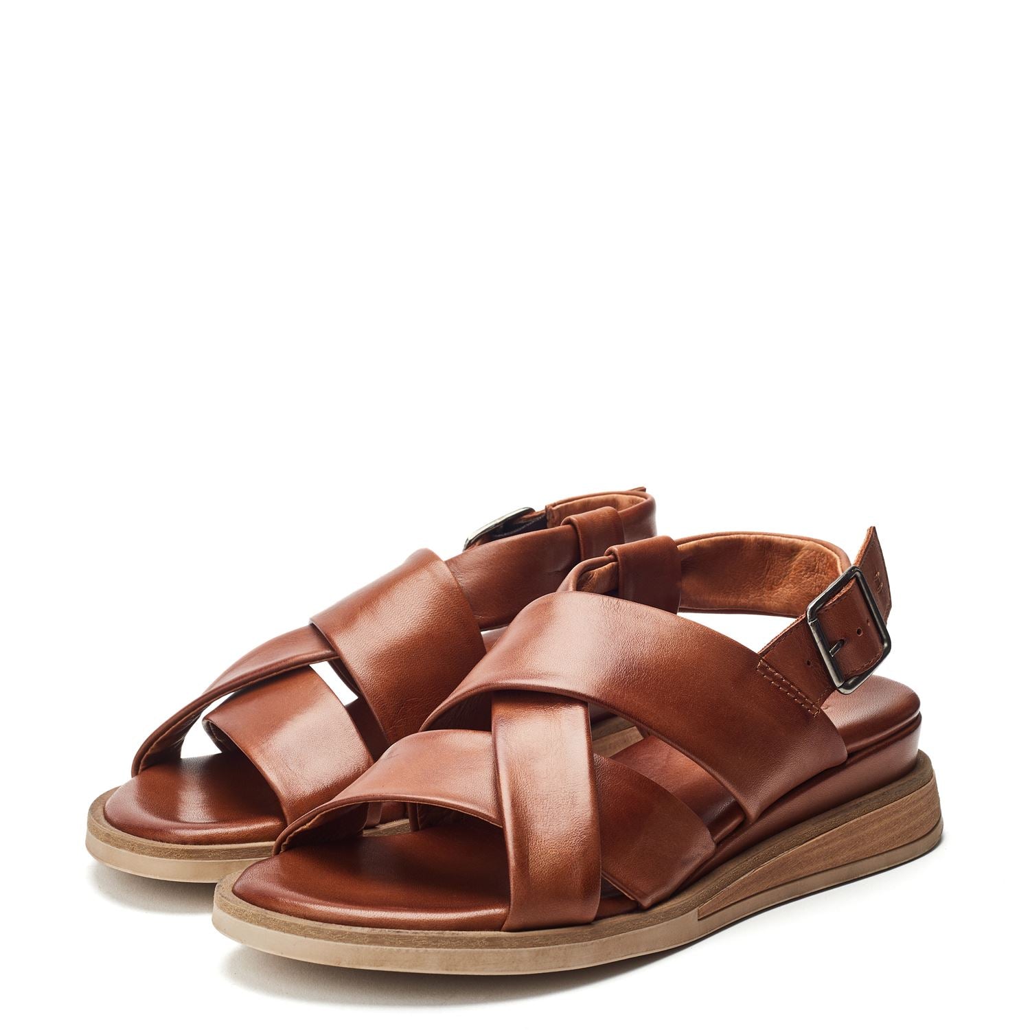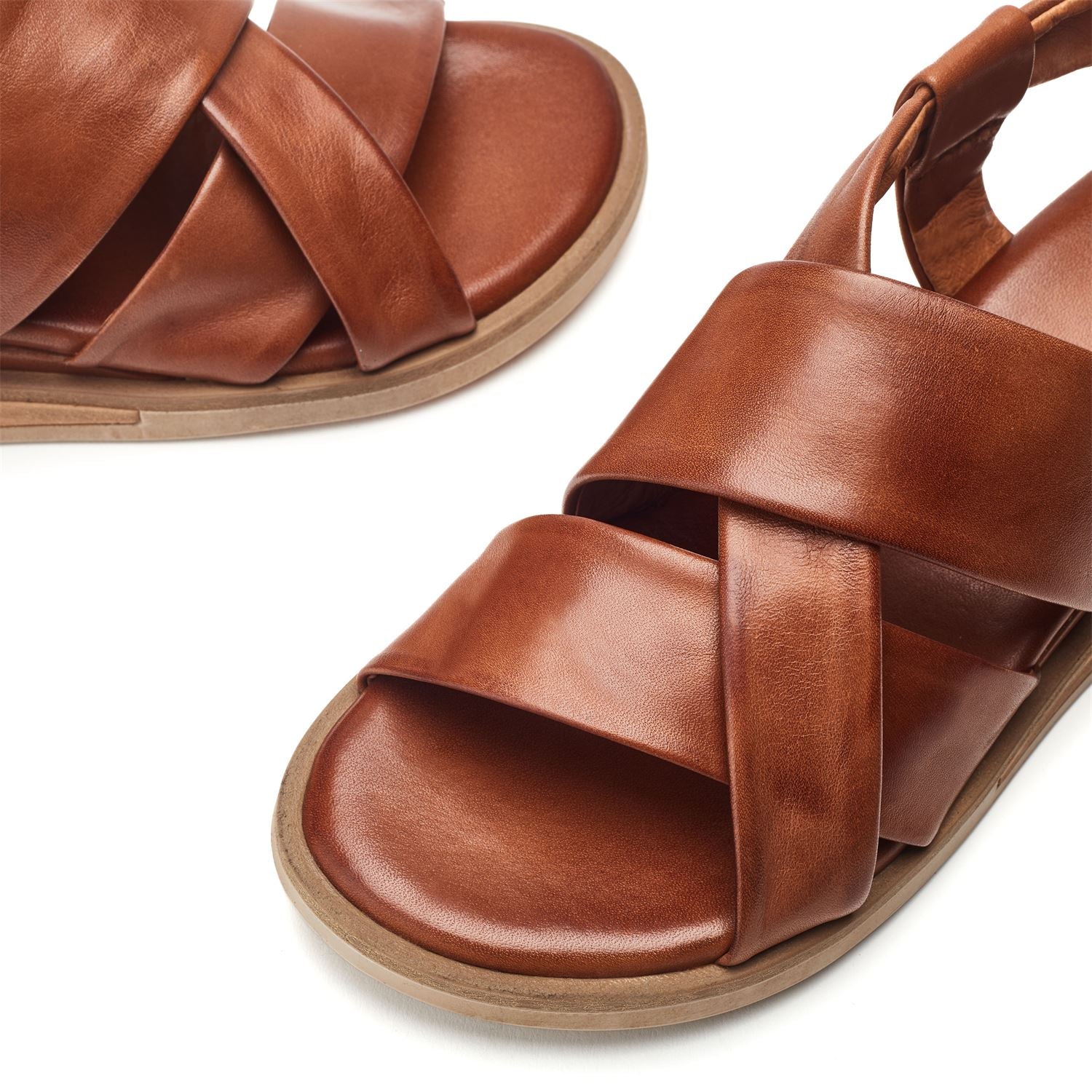 - Featuring a sleek cross-strap design that gracefully hugs the foot this sandal offers a secure and adjustable fit.