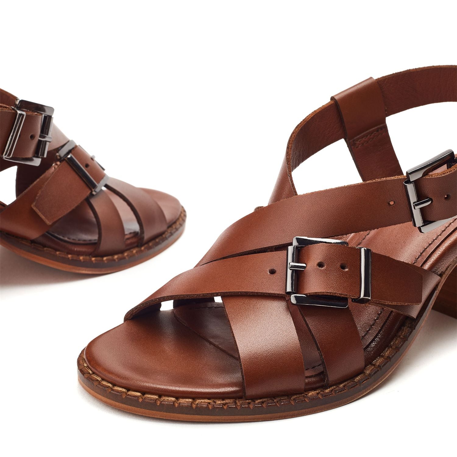 - Featuring multiple crisscrossing straps that wrap around the foot this sandal creates a dynamic eye-catching design.