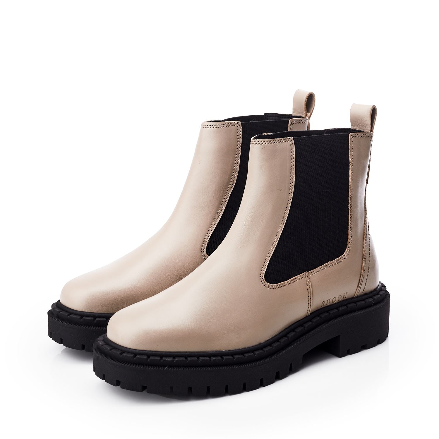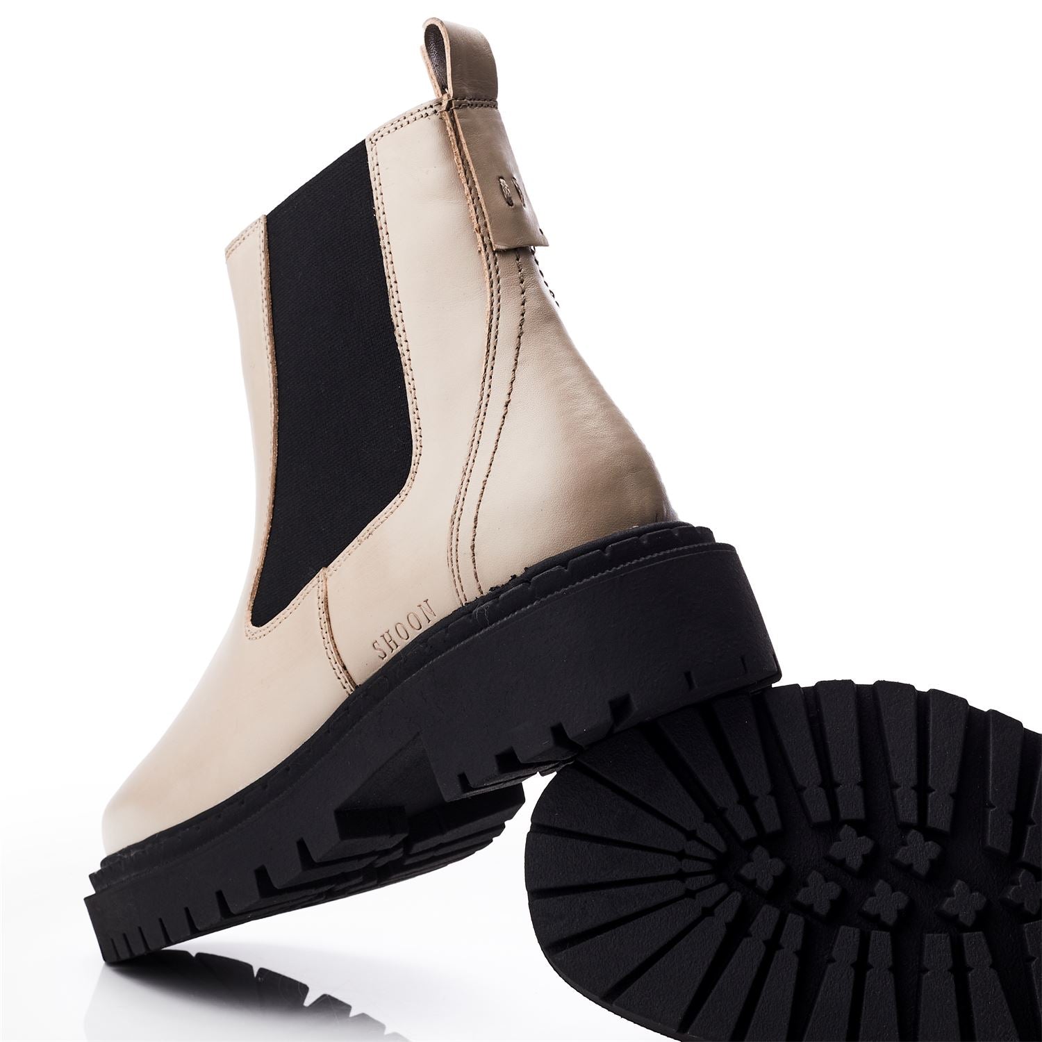 Showcasing Santos from the Shoon collection. This Chelsea boot style features a contrasting cleated sole, fusing fashion and function for everyday wear. The elasticated side panel allows the boot to move with you and fit your unique leg shape for a flawless finish.