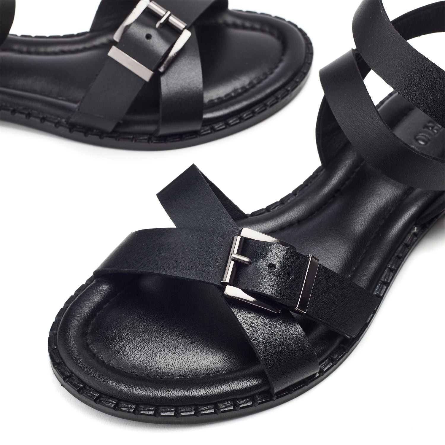 • Featuring cross straps that secure the foot and an adjustable buckle.