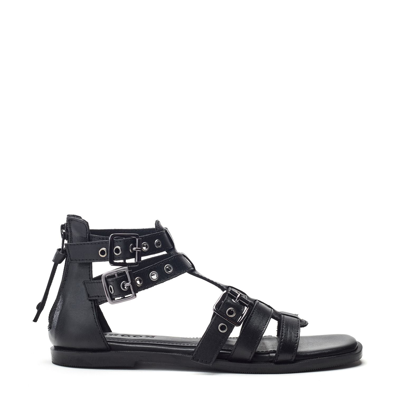 - . Featuring multiple straps that extend across the foot and ankle this sandal creates a secure flattering fit.